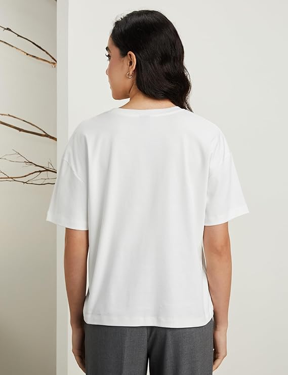 - STYLE DETAIL: A slightly larger-than-regular-size T-shirt with half sleeves