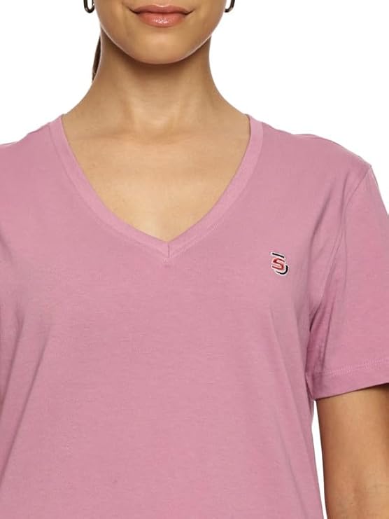 Women’s V-Neck T-Shirt, Soft Knit 180 GSM, Half Sleeve Casual Top for Everyday Comfort-Lilac